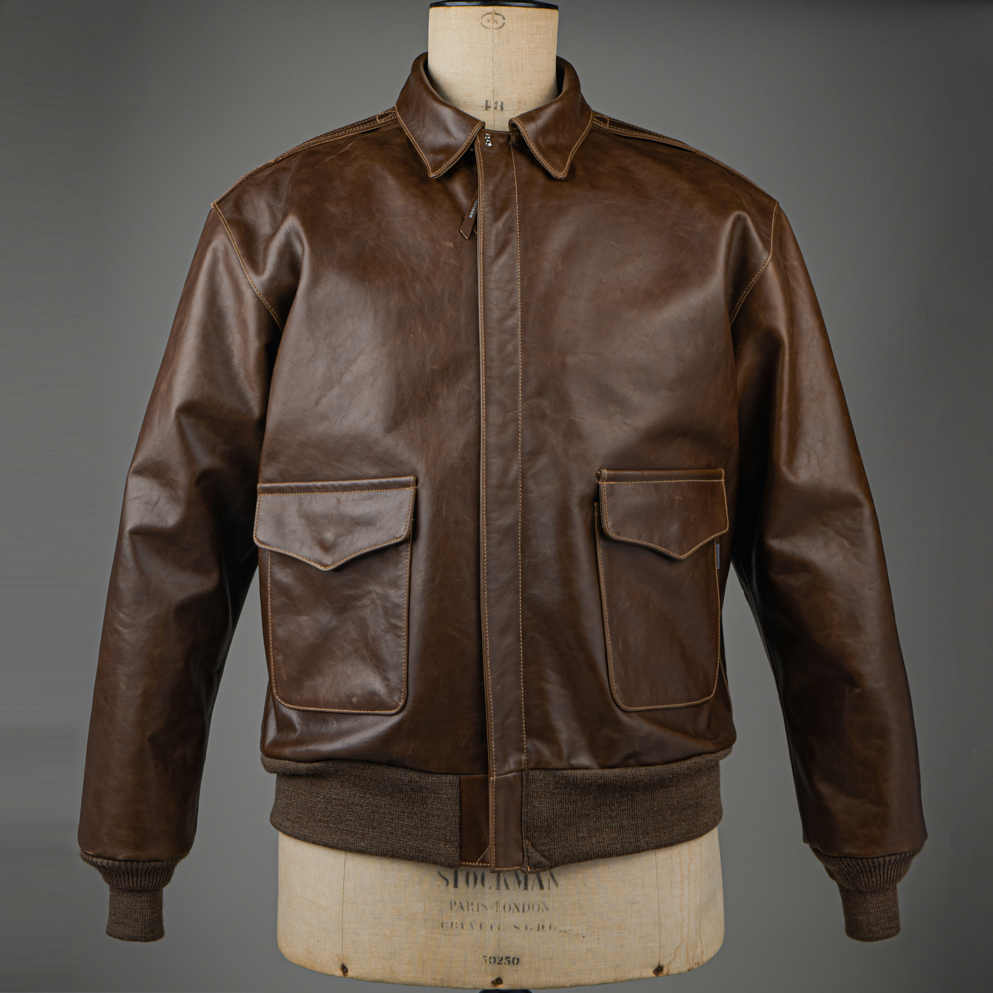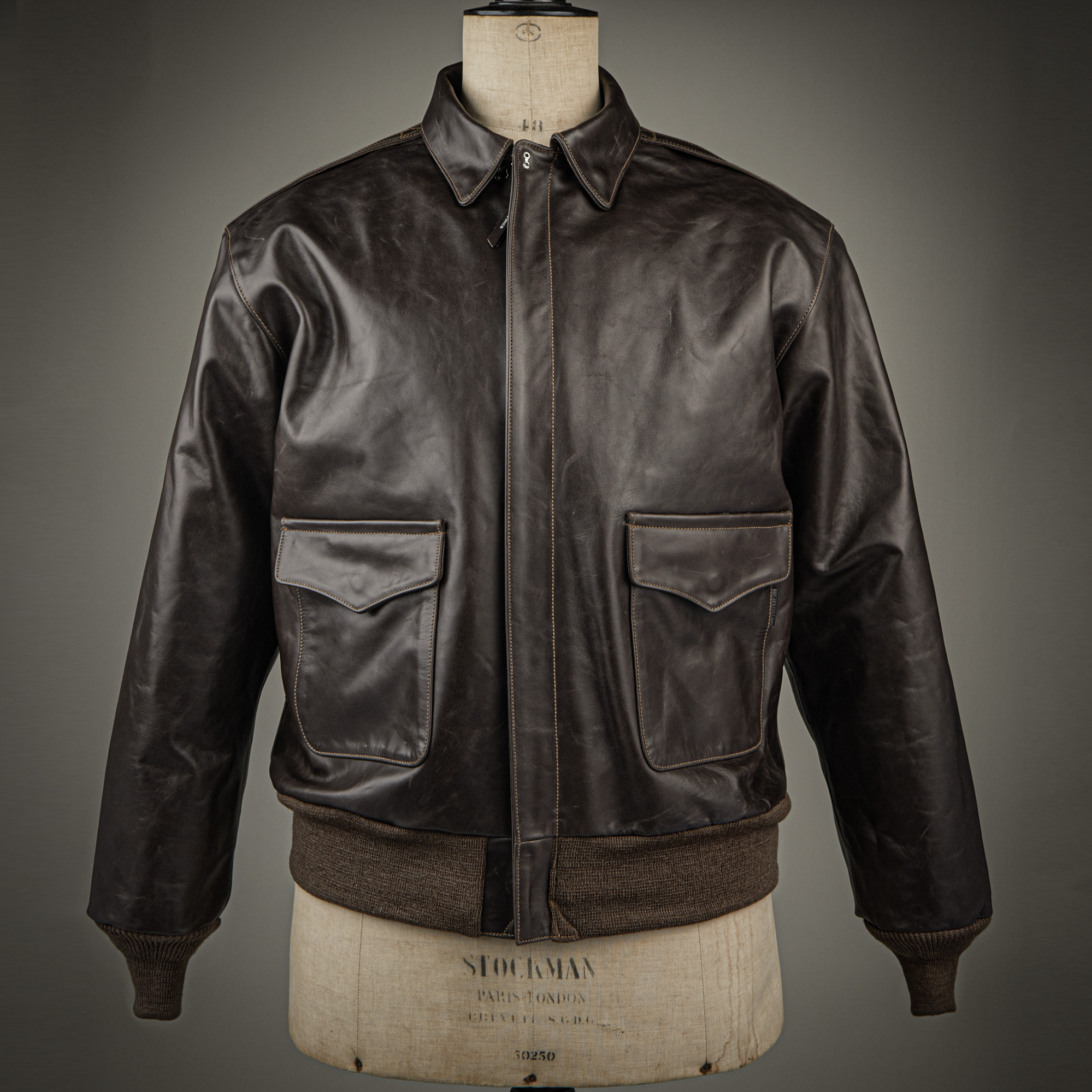 클래식 플라이트 재킷에서 상징성 높은 짙은 밤색 계열입니다.